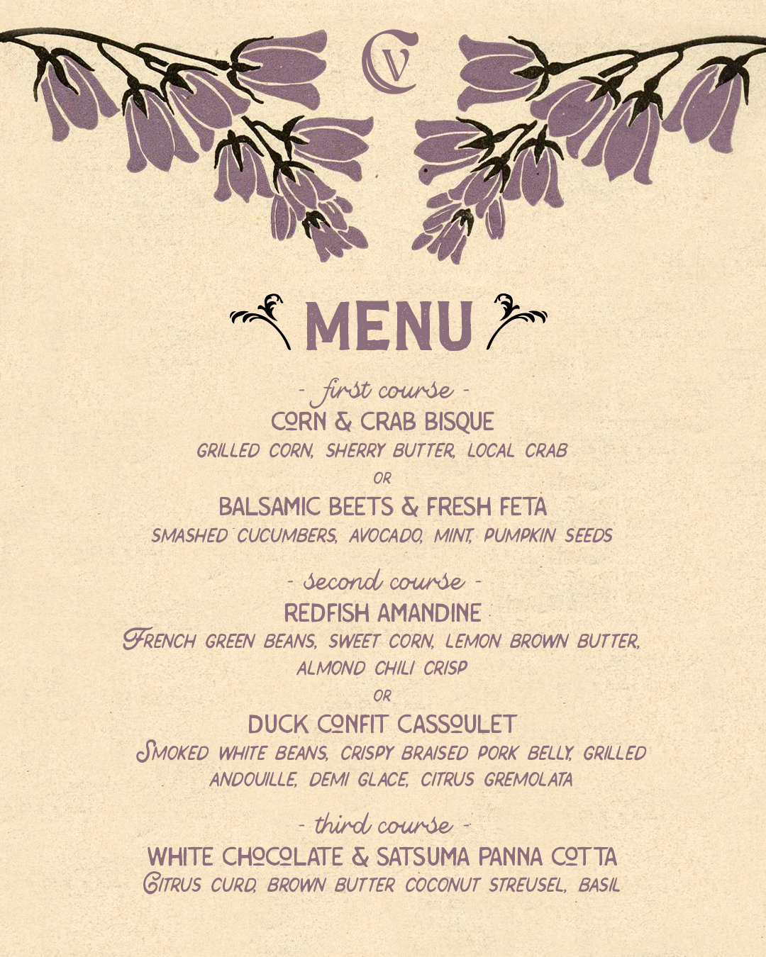 Mardi Gras in Bloom is Copper Vine’s Deep Gras lunch. It is a seated, table-forward experience designed to share. Guests are welcomed with a mimosa and passed appetizers before settling in for a festive three-course lunch and an exciting burlesque performance.